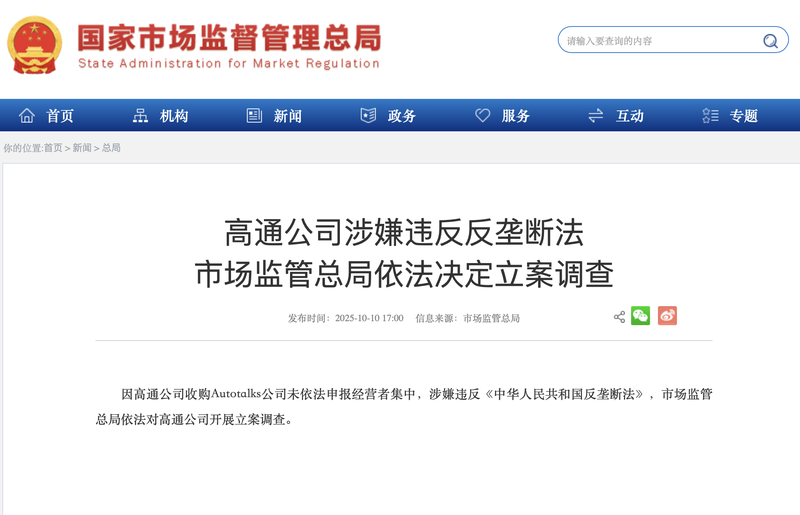 新京报贝壳财经讯(记者魏博雅)10月10日,国家市场监管总局发布公告称,高通公司收购Autotalks时未依法申报经营集中,涉嫌违反《中华人民共和国反垄断法》。国家市场监管总局已依法对高通展开调查。公开资料显示,Autotalks成立于2008年,是一家无晶圆厂半导体公司,其产品支持全球主要通信标准,包括DSRC和C-V2X(涵盖LTE-V2X和5G-V2X)。据报道,V2X 技术允许车辆之间以及与环境直接通信,从而提高道路安全和运输效率。 2023 年 5 月,高通宣布其子公司高通技术公司已与 Autotalks 签署最终协议。不过,这笔交易的标的却是蚂蚁金服itrust在欧美多地展开调查,因为涉及核心车辆通讯技术。 2025年6月,高通宣布完成收购。高通表示,Autotalks产品现已成为Snapdragon数字机箱产品组合的一部分。此案标志着高通第二次在中国受到反垄断调查。 2015年,国家发改委依法对高通滥用市场力量、排除、限制竞争行为进行处罚。责令高通停止相关违法行为,并罚款60.88亿元。编辑:岳彩舟 校对:陆谦